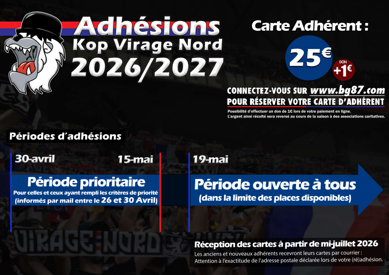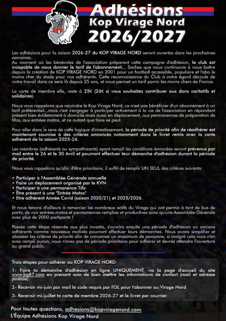 Inscription réservée aux Adhérents et Sympathisant Kop Virage Nord 25/26